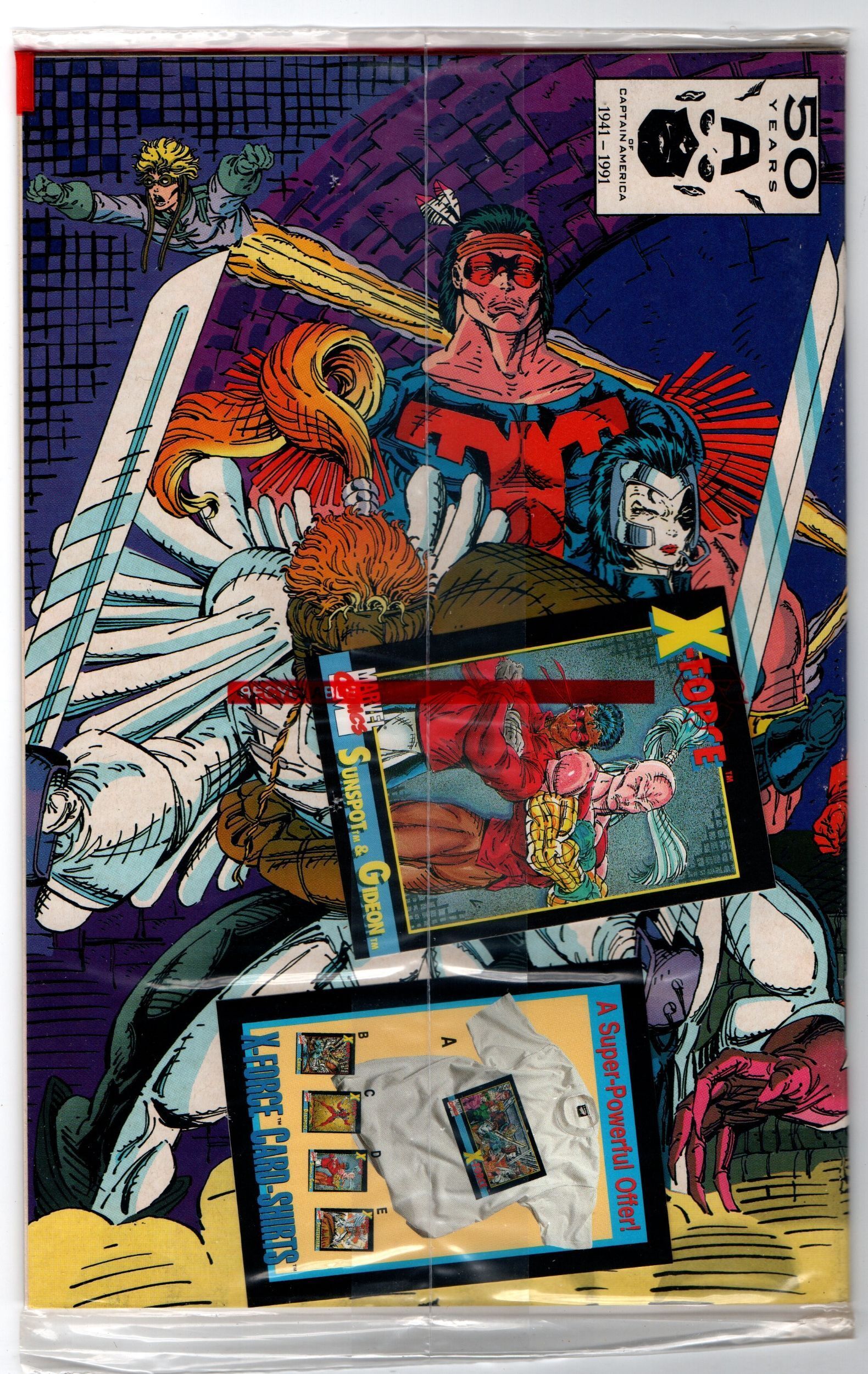 X-Force #1 (1991) Sunspot & Gideon card. Sealed polybag w/sticker on bag.