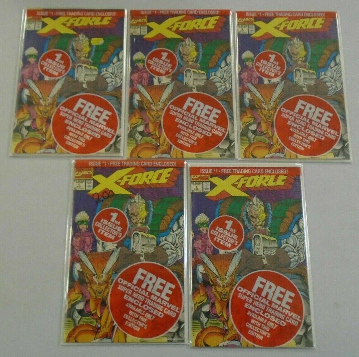 X-Force #1 set of 5 different trading cards with issues 8.0 VF (1991)