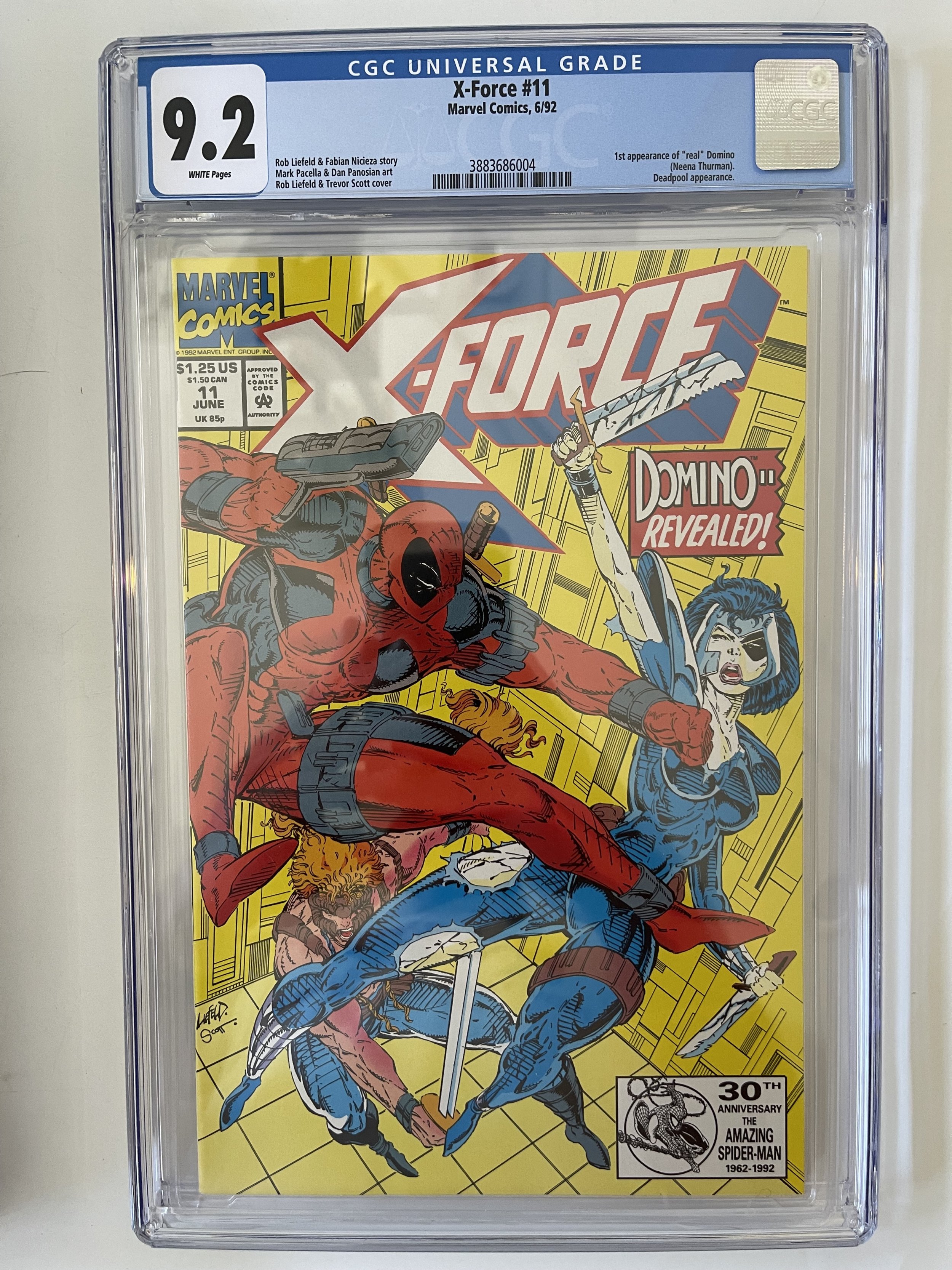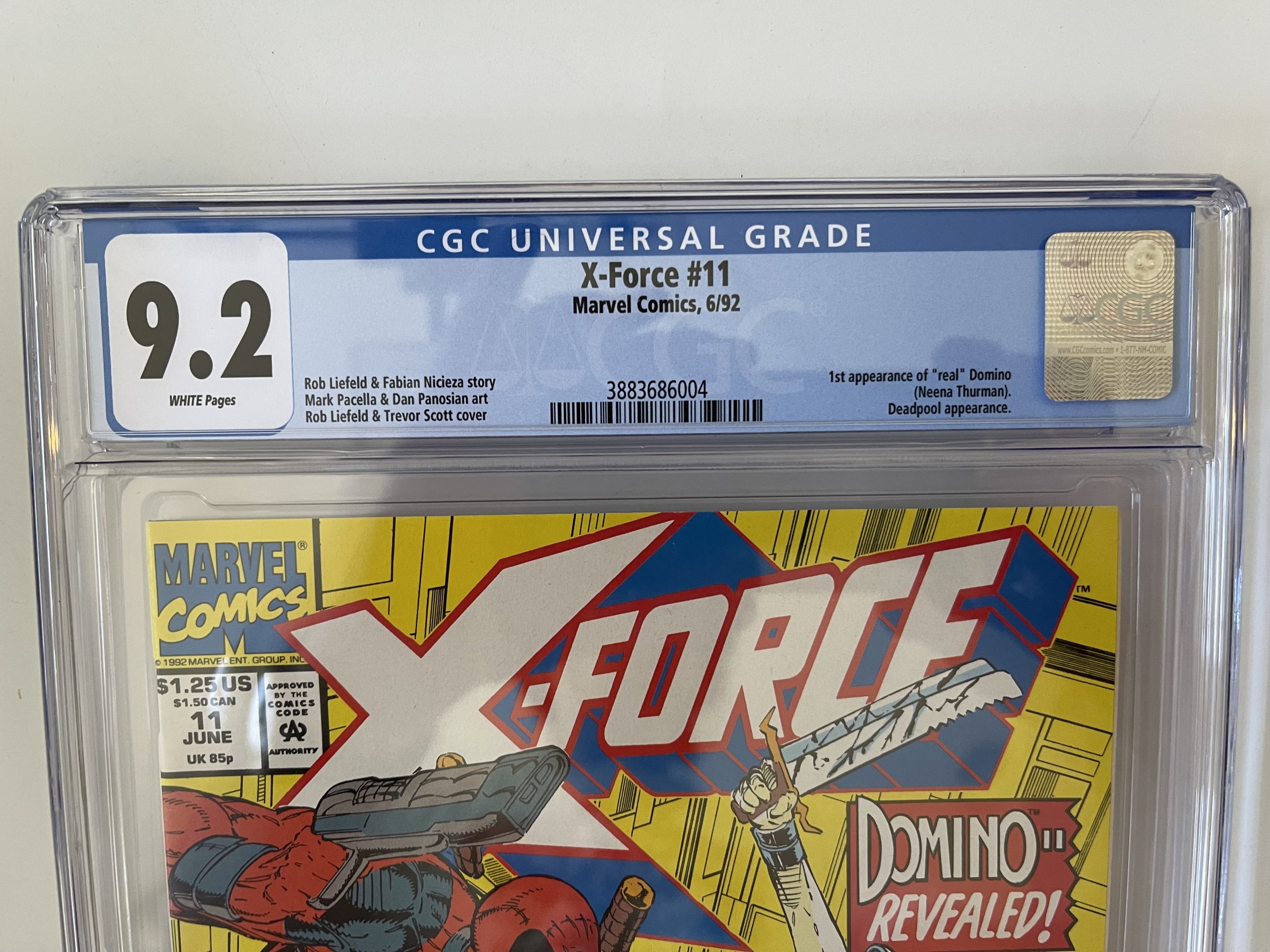 X-Force #11 CGC 9.2 NM 1st Full Appearance Real Domino, Deadpool, (1992)The pictures above represent the exact item you are going to receive. They are NOT stock pictures. There are no missing pages, rips or cutouts.I am not a professional grader, so please use the pictures above to determine the grade for yourself. I have tried to grade as accurately as possible.