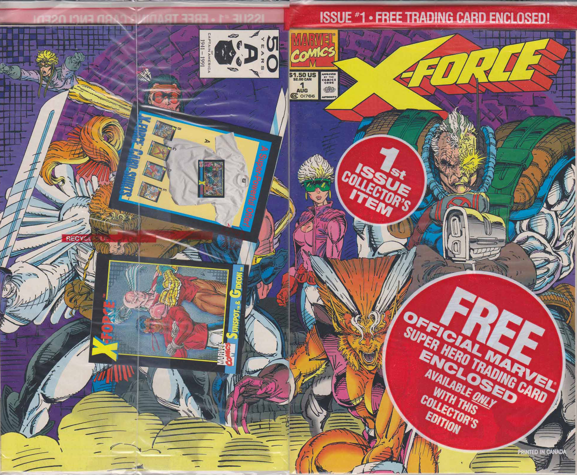Item: X-Force #1K | Publisher: Marvel | Cover Date: August 1991 | Writer: Rob Liefeld, Fabian Nicieza | Artist: Rob Liefeld | Cover Artist: Rob Liefeld | Appearances: Cable, Cannonball, Boom-Boom, Warpath, Domino II, Shatterstar, Feral, Sunspot, Nick Fury, Mutant Liberation Front, Stryfe, Reaper, Forearm, Wildside, Kamikaze, Thumbelina, Zero, Gideon, Black Tom Cassidy, G.W. Bridge | Storylines: A Force To Be Reckoned With | Notes: 1st Appearance of G.W. Bridge; Bagged with Sunspot & Gideon card (white/negative Captain America in UPC box); Wraparound cover | With Economy shipping, each additional comic ships for just 50 cents more to customers in the USA. This listing contains a stock photo and information from ComicBase™ and © Human Computing. The stock photo is for reference only. If you would like to see a photo of the actual item, please message us prior to purchasing.Seller Information