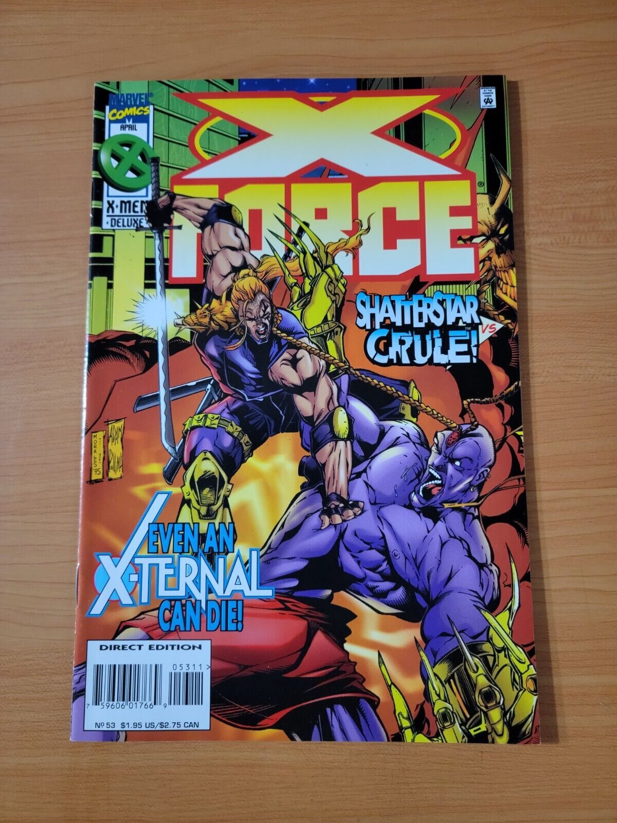 Item DescriptionX-Force #53 Direct Market EditionPublisher: Marvel ComicsPublished: 1996Item Grade/ConditionGrade: NEAR MINTFor more information about this grade and other grades, please see our grading standards.~ WE TAKE HIGH DEFINITION PICTURES OF OUR COMICS ~ For more detail use the ZOOM Function and check them out yourself! ~Shipping Info:United States: Comic Book & Magazine Orders of all sizes, big and small ship for a flat Single Shipping ChargeInternational: We use Calculated Shipping! ~ This insures that you get the LOWEST POSSIBLE COST! ~ Please give us one business day to calculate large orders! The Calculator for Hip is pretty bad for international, contact us if you are looking to order multiple books so we can help you make it work on the back end! As a courtesy to our customers, we insure all orders over 50$ US ~ YOU DONT PAY EXTRA!Delivery TimeWe process and ship all orders within 1 business days. Once shipped, estimated U.S. transit time is 2-10 business days; international 14-21 business days.(Orders placed on Friday afternoon as well as weekends will be shipped the next business day as we do not ship on the weekends).PackingOmnomax Traders has mastered packing to ensure our orders of a "damage-free transport."Using the following methods, we have seen a nearly perfect 99% success rate for undamaged comics!Here is how our orders ship:All Orders :Bagged AND Boarded, ALWAYS NO EXCEPTIONS!Shipped in a Gemini Comic Mailer OR Tightly secured between 4x stiff pieces of corrugated cardboard (double Sandwiched)Sealed on all 4 sides with strong packing tape (Items doesn't even wiggle).:*Now this method is nearly perfect! however we have seen damage happen to items ( only once or twice a year ) ~ this is often due to bad handling by the postal service. Always remember to contact us if this happens! we are committed to quality service!*Offers History