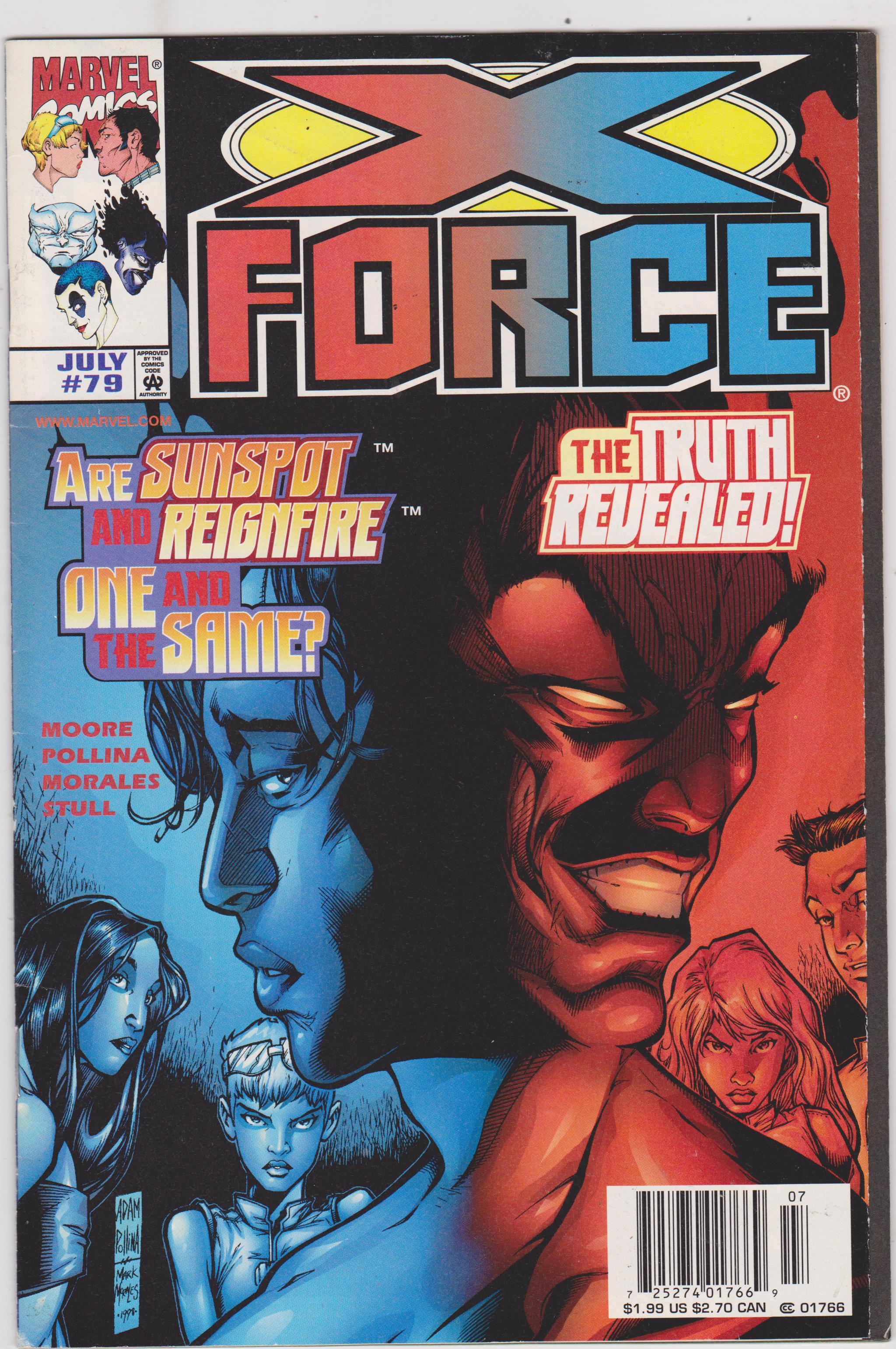 X-Force #79 by Marvel Comics copyright 1998. I have graded the comic book, using the Oversteet Grading Guide, at FINE/VERY FINE with the following defects: Light stress marks along the spine. The corners are rounded. There is yellowing of the pages.Seller Information