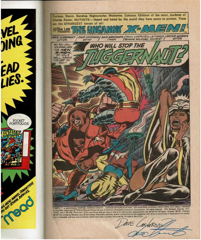 X-Men #102, 7.5 or Better, Signed by Chris Claremont & Dave Cockrum
