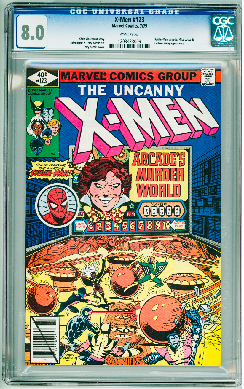 X-Men #123 CGC 8.0! White Pages! 2 small cracks on slab