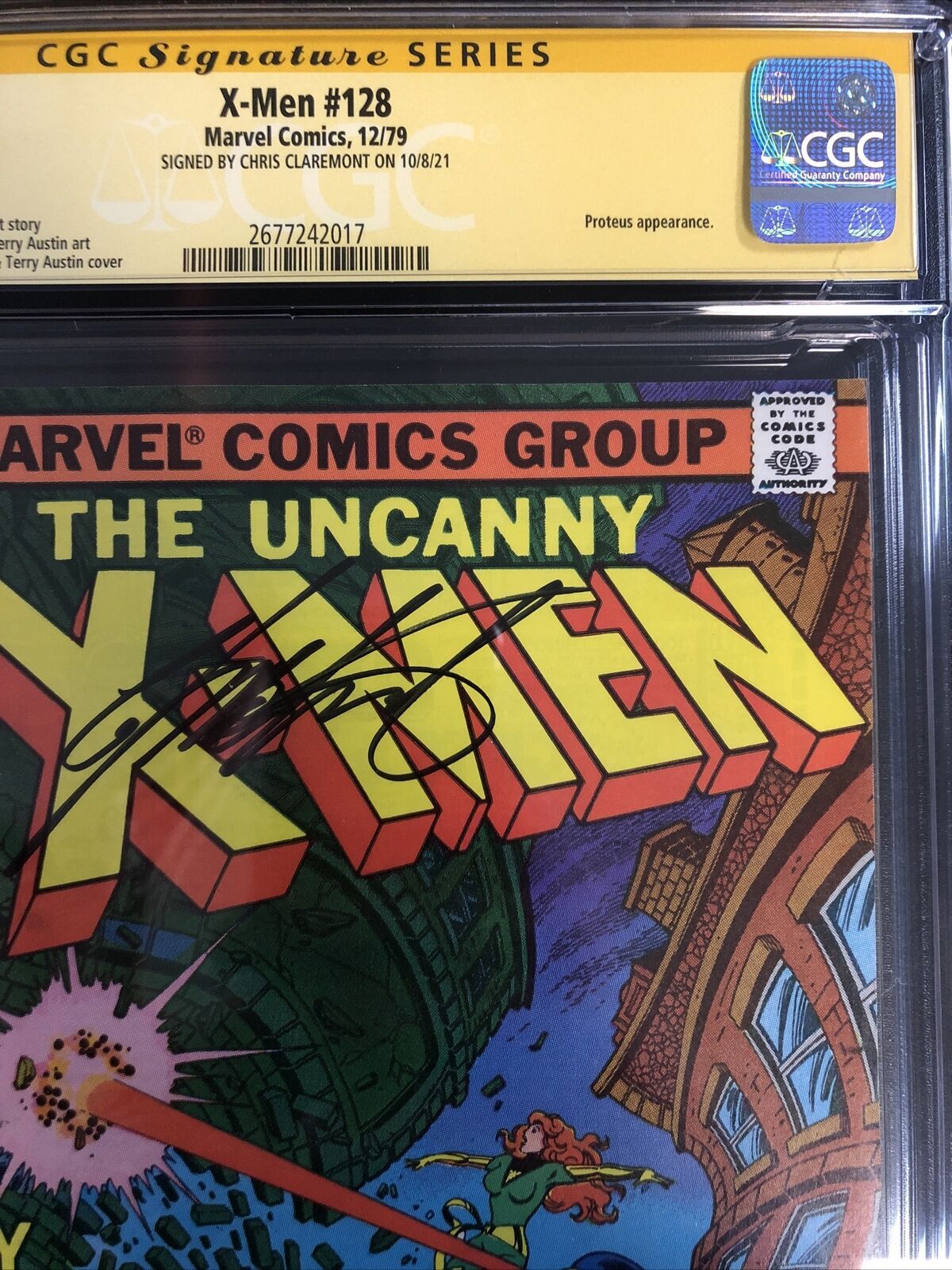 X-Men (1979) # 128 (CGC 9.2 WP SS) Signed By Chris Claremont | Proteus App