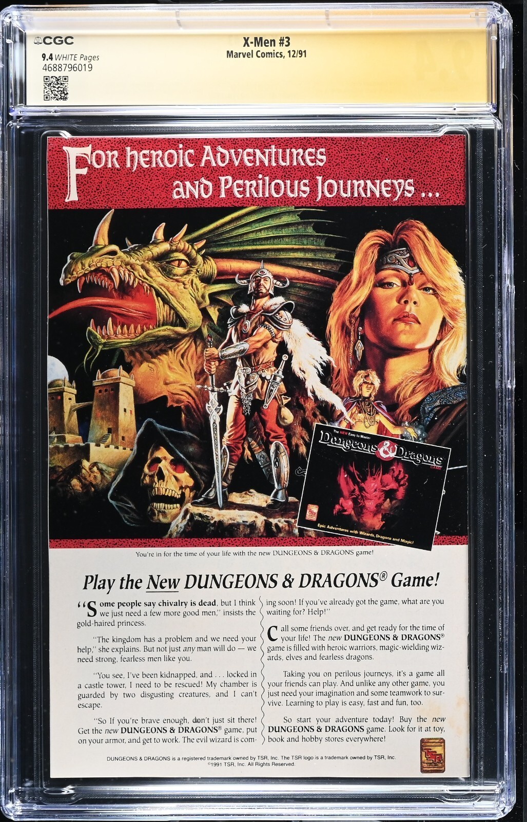 Grade: 9.4 Near Mint Dive into the dynamic world of the X-Men with this pristine copy of X-Men (1991) #3, graded at a stunning 9.4 Near Mint by the CGC. Featuring the autograph of legendary writer Chris Claremont, ... Read More