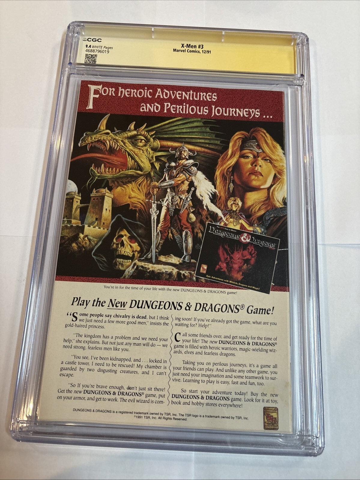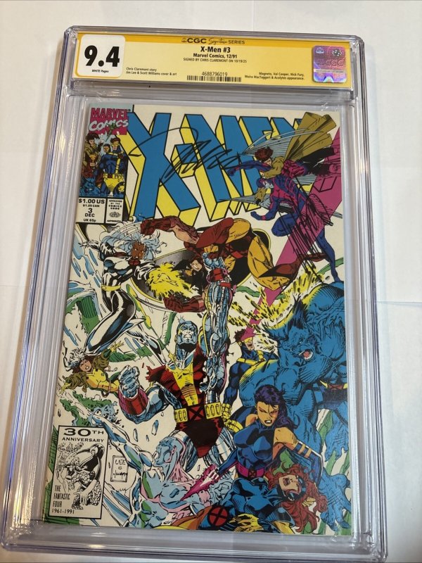 Grade: 9.4 Near Mint Dive into the dynamic world of the X-Men with this pristine copy of X-Men (1991) #3, graded at a stunning 9.4 Near Mint by the CGC. Featuring the autograph of legendary writer Chris Claremont, ... Read More