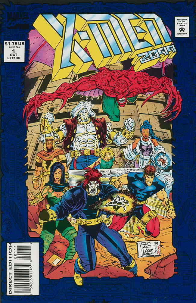 NOTES: Foil cover; 1st appearance of X-Men 2099; 1st appearance of Bloodhawk (Lemuel Krug); 1st appearance of Cerebra (Shakti Haddad); 1st appearance of Krystalin (Ruth Kirsten Porter-Ogada); 1st appearance of Meanstreak (Henri Huang); 1st appearance of Metalhead (Edward Beethoven Osako); 1st appearance of Serpentina (Kimberly Kristine Potters); 1st appearance of Skullfire (Timothy Sean Michael Fitzgerald); 1st appearance of Xi'an Chi Xan; 1st appearance of Junkpile; 1st appearance of Lytton Synge; 1st appearance of Desdemona Synge; 1st appearance of Noah Synge