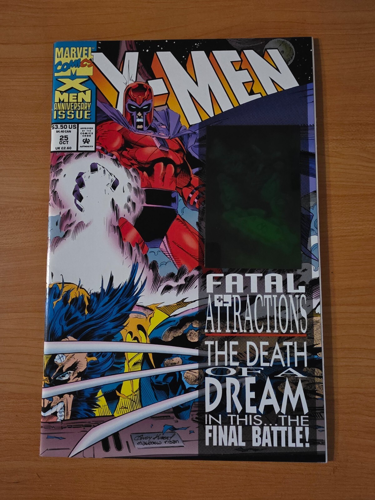 Item DescriptionX-Men #25 Direct Market EditionPublisher: Marvel ComicsPublished: 1993Item Grade/ConditionGrade: NEAR MINTFor more information about this grade and other grades, please see our grading standards.~ WE TAKE HIGH DEFINITION PICTURES OF OUR COMICS ~ For more detail use the ZOOM Function and check them out yourself! ~Shipping Info:United States: Comic Book & Magazine Orders of all sizes, big and small ship for a flat Single Shipping ChargeInternational: We use Calculated Shipping! ~ This insures that you get the LOWEST POSSIBLE COST! ~ Please give us one business day to calculate large orders! The Calculator for Hip is pretty bad for international, contact us if you are looking to order multiple books so we can help you make it work on the back end! As a courtesy to our customers, we insure all orders over 50$ US ~ YOU DONT PAY EXTRA!Delivery TimeWe process and ship all orders within 1 business days. Once shipped, estimated U.S. transit time is 2-10 business days; international 14-21 business days.(Orders placed on Friday afternoon as well as weekends will be shipped the next business day as we do not ship on the weekends).PackingOmnomax Traders has mastered packing to ensure our orders of a "damage-free transport."Using the following methods, we have seen a nearly perfect 99% success rate for undamaged comics!Here is how our orders ship:All Orders :Bagged AND Boarded, ALWAYS NO EXCEPTIONS!Shipped in a Gemini Comic Mailer OR Tightly secured between 4x stiff pieces of corrugated cardboard (double Sandwiched)Sealed on all 4 sides with strong packing tape (Items doesn't even wiggle).:*Now this method is nearly perfect! however we have seen damage happen to items ( only once or twice a year ) ~ this is often due to bad handling by the postal service. Always remember to contact us if this happens! we are committed to quality service!*Offers History