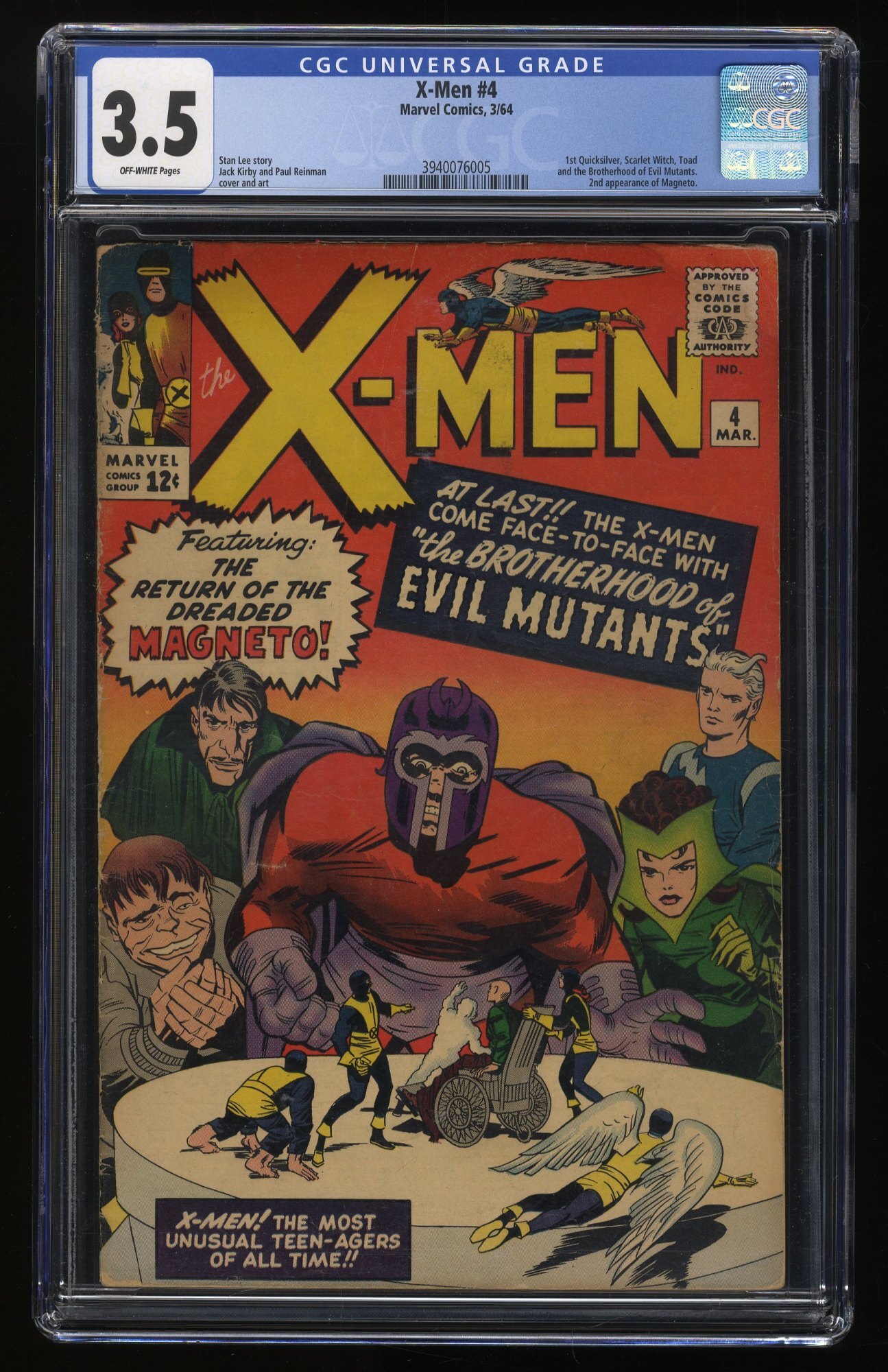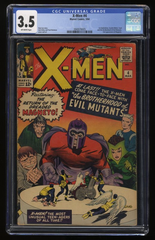 X-Men #4 CGC VG- 3.5 Off White 1st Appearance Quicksilver Scarlet Witch!