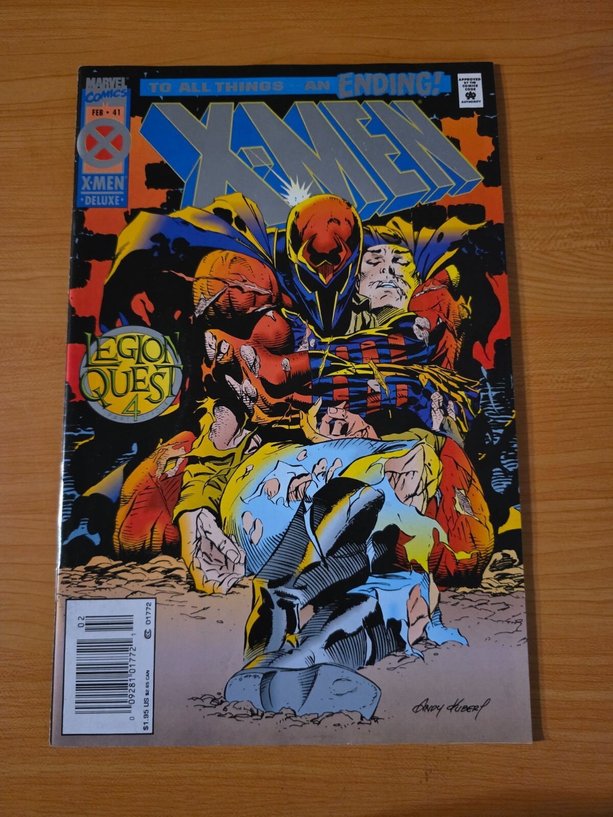 Item DescriptionX-Men #41 Newsstand VariantPublisher: Marvel ComicsPublished: 1995Item Grade/ConditionGrade: NEAR MINTFor more information about this grade and other grades, please see our grading standards.~ WE TAKE HIGH DEFINITION PICTURES OF OUR COMICS ~ For more detail use the ZOOM Function and check them out yourself! ~Shipping Info:United States: Comic Book & Magazine Orders of all sizes, big and small ship for a flat Single Shipping ChargeInternational: We use Calculated Shipping! ~ This insures that you get the LOWEST POSSIBLE COST! ~ Please give us one business day to calculate large orders! The Calculator for Hip is pretty bad for international, contact us if you are looking to order multiple books so we can help you make it work on the back end! As a courtesy to our customers, we insure all orders over 50$ US ~ YOU DONT PAY EXTRA!Delivery TimeWe process and ship all orders within 1 business days. Once shipped, estimated U.S. transit time is 2-10 business days; international 14-21 business days.(Orders placed on Friday afternoon as well as weekends will be shipped the next business day as we do not ship on the weekends).PackingOmnomax Traders has mastered packing to ensure our orders of a "damage-free transport."Using the following methods, we have seen a nearly perfect 99% success rate for undamaged comics!Here is how our orders ship:All Orders :Bagged AND Boarded, ALWAYS NO EXCEPTIONS!Shipped in a Gemini Comic Mailer OR Tightly secured between 4x stiff pieces of corrugated cardboard (double Sandwiched)Sealed on all 4 sides with strong packing tape (Items doesn't even wiggle).:*Now this method is nearly perfect! however we have seen damage happen to items ( only once or twice a year ) ~ this is often due to bad handling by the postal service. Always remember to contact us if this happens! we are committed to quality service!*Offers History