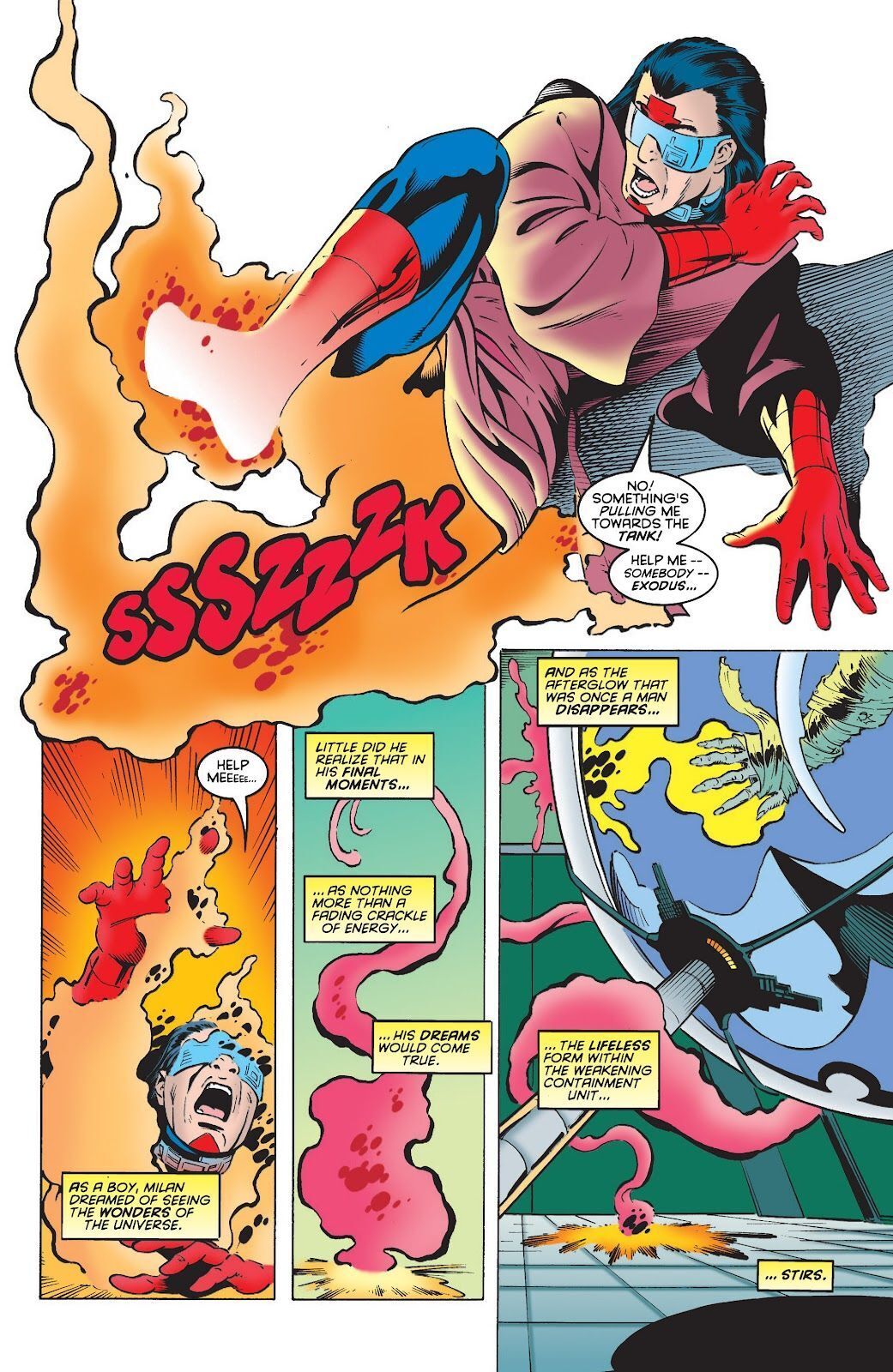 Exodus brings an unknown mutant onto Avalon seeing it as a sign of good fortune. The mutant turns out to be Holocaust from the Age of Apocalypse who starts picking off the Acolytes. Amelia Voght turns to the X-Men for help and brings Cyclops and Jean to Avalon where a battle is going on.