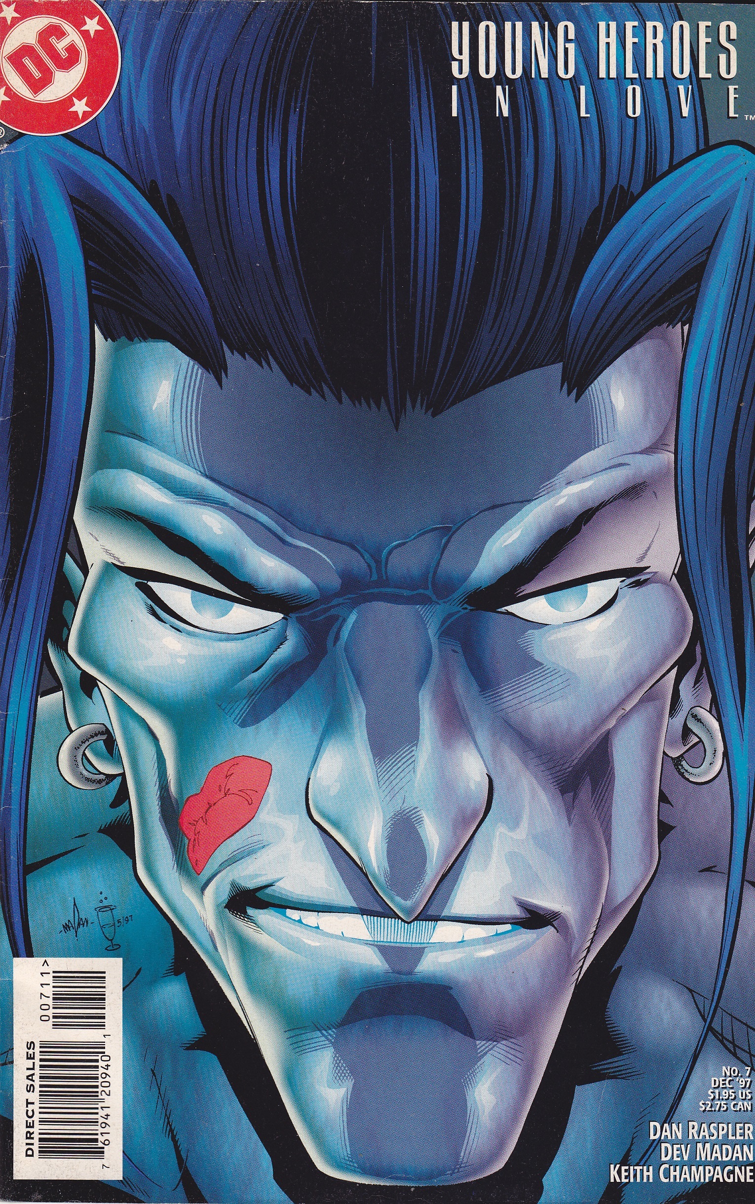 Young Heroes in Love #7 by DC Comics copyright 1997. I have graded the comic book, using the Overstreet Grading Guide, at VERY FINE with the following defects: Light stress marks along the spine. The corners are rounded. There is light yellowing of the pagesSeller Information