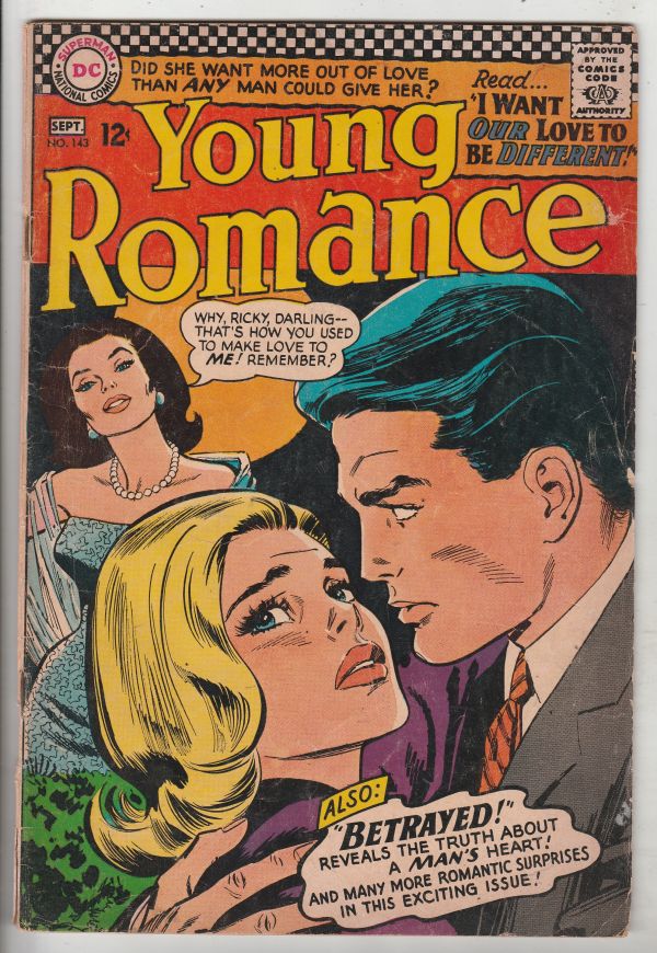 Young Romance #143 - Betrayed!There are creases on the top of the back cover and the book is light creamy tan so we have lowered the grade accordingly.