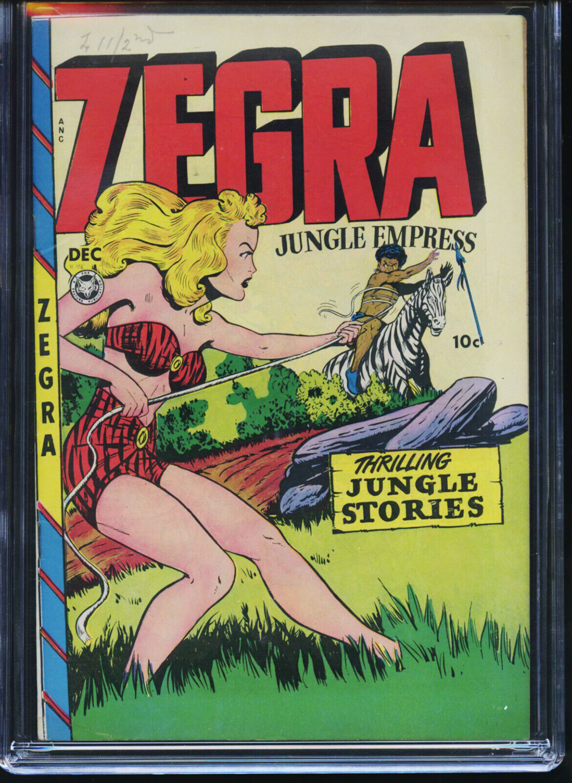 ZEGRA #3 - CGC-7.5, WP - Fox - Golden Age DESCRIPTION:This very sharp, unrestored copy is complete, fully readable and has both covers attached. The book has white pages. Condition is a very conservatively graded 7.5, VFN-. Tied 3rd highest graded. SHIPPING INFORMATION:Combine our auctions and $ave on shipping!Please remember that Media Rate may take up to 4 weeks delivery.FEDEX services available.Nevada residents, please add sales tax.We accept PayPal, MasterCard, Visa, Discover, American Express.NOTES AND FINE PRINT: Welcome to Redbeard's Book Den! For most that have collected comic books for the last 30 years, you have probably heard of us. Redbeard's founder and current owner is Ron Pussell (aka Redbeard), senior Overstreet Price Guide consultant since 1980.REDBEARD'S BOOK DENPO Box 217Crystal Bay, NV 89402-0217 _gsrx_vers_1710 (GS 9.9.1 (1710))