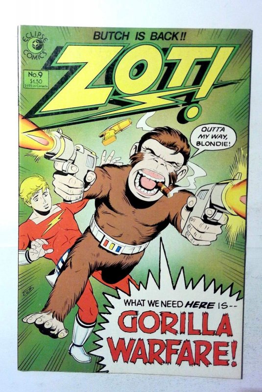 View All ListingsSee FeedbackAdd to Favorite SellersDESCRIPTIONZot! #9 Eclipse Comics 1985 Ungraded Condition Copper Age Comic Book 1st PrintingZot! #9 (1985) Jenny's brother Butch, on the run from the law, is captured by a weird cult but then is mistaken for their god and he takes advantage of that to lead an attack to aid Zot in "Gorilla Warfare." Script and art by Scott McCloud. Issue also has a "Behind the Scenes" feature on Zot. Increase your comic book collection and enjoy this comic book featuring stories from Eclipse Comics.Our newer comic books for sale are usually* high grade, unread, mostly flat, and glossy back stock. Our comics are usually unread back-issues in excellent condition. See the listing image(s) to get a better evaluation of the condition. Grading, if provided, is of our personal opinion.COMBINED SHIPPING PROMOTIONAnd to Cart and Pay shipping only once*. Flat rate shipping cost for multiple item orders.*Highest shipping rate is applied to the order. *Exclusions apply - CGC/Slabbed books ship at a higher tier so the cost is only reduced.BEST OFFER ACCEPTEDOffers are excluded from promotional discounts since they represent your requested cost for purchase. Combined shipping can be expected but may not be applied automatically if you checkout offers/items separately.SHIPPING DETAILSOrders ships out the same or next business day. The average shipping delivery time range from 2 to 7 days. Shipped using economy options which is usually USPS Ground Advantage.PAYMENT DETAILSPay with Google Pay, PayPal, PayPal Credit, debit card, or most credit cards.FREE RETURNS30 days money back guaranteed. Returns accepted and shipping will be paid by the seller.Check Out Our Other ListingsHip Store:Cosmic-King©2025 cosmic-king. All Rights Reserved.